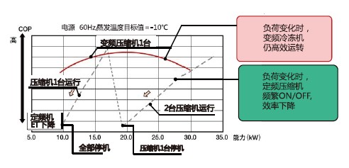 與交流變頻對比,直流變頻冷凍冷藏系統(tǒng)COP更高,更節(jié)能