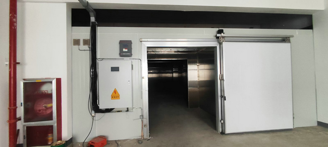 電氣系統(tǒng):采用蘇州精創(chuàng)微電腦溫度控制器,帶LTC-100大屏幕顯示控制器,并且具備溫濕度報(bào)警,數(shù)據(jù)記錄,手機(jī)客戶端監(jiān)控等功能。庫內(nèi)照明選用的LED專用防潮、防爆冷庫庫燈,該庫燈外形美觀、照明度好。