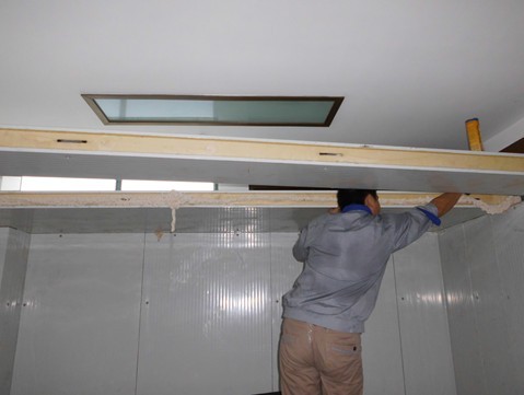 總結:安裝冷庫板時,嚴格按照圖紙施工,彈線要準,直。分清庫板凸凹面的走向。(不分凸凹面的話可能會導致門無法安裝)每塊板在拼裝前一定打滿發(fā)泡劑。發(fā)泡劑不能少打。每個偏心鉤用內六角固定,安裝時確保每個連接口牢固,縫隙不能過大,保持水平,不能出現(xiàn)歪斜。